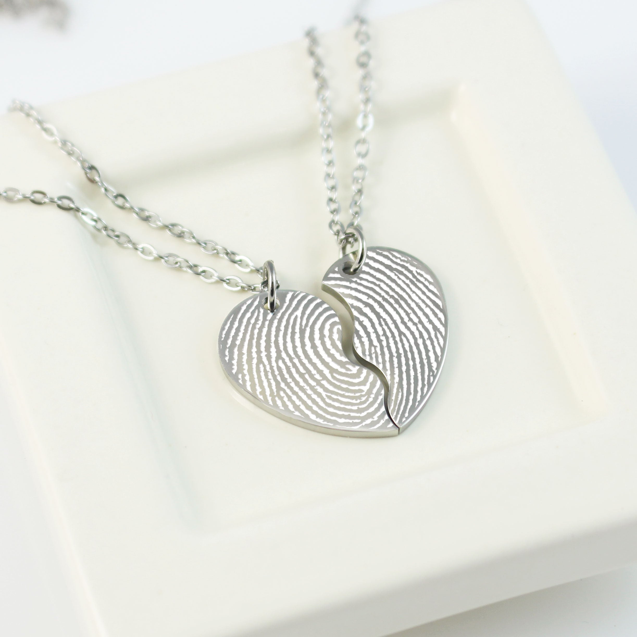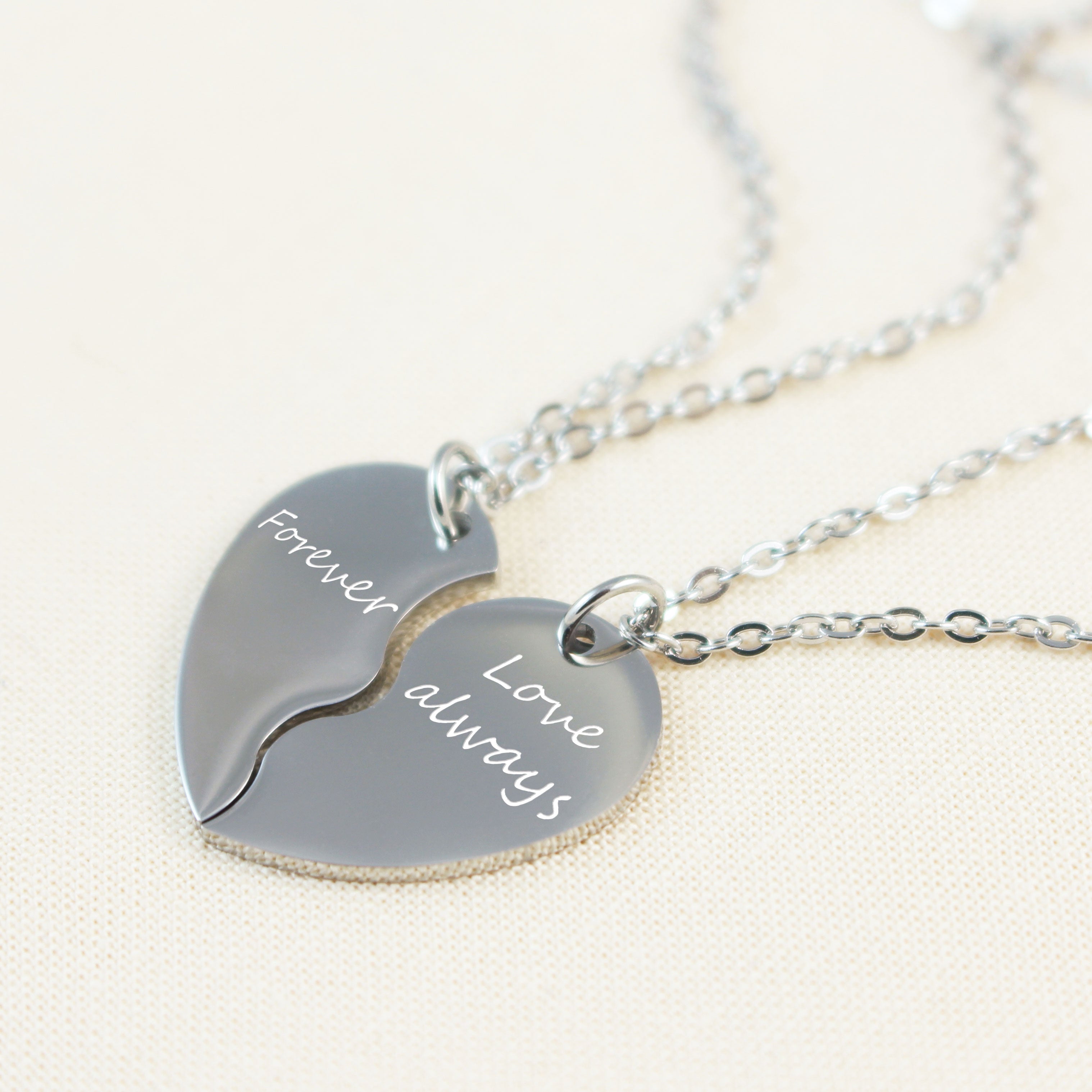 Personalized Engraved Initial Heart Necklace - Couple Half Heart Necklace - Boyfriend Girlfriend Special Gift - Memorial Gift