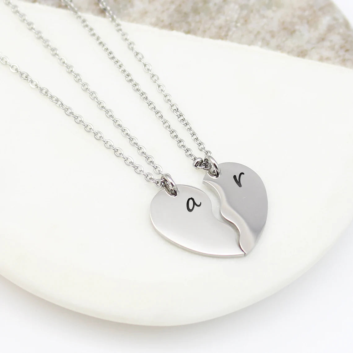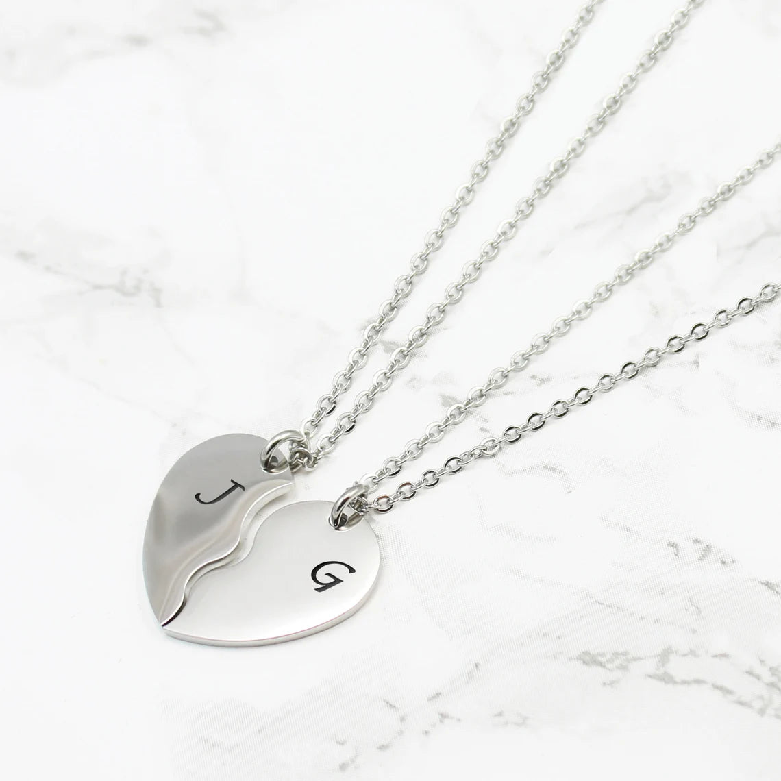 Personalized Engraved Initial Heart Necklace - Couple Half Heart Necklace - Boyfriend Girlfriend Special Gift - Memorial Gift