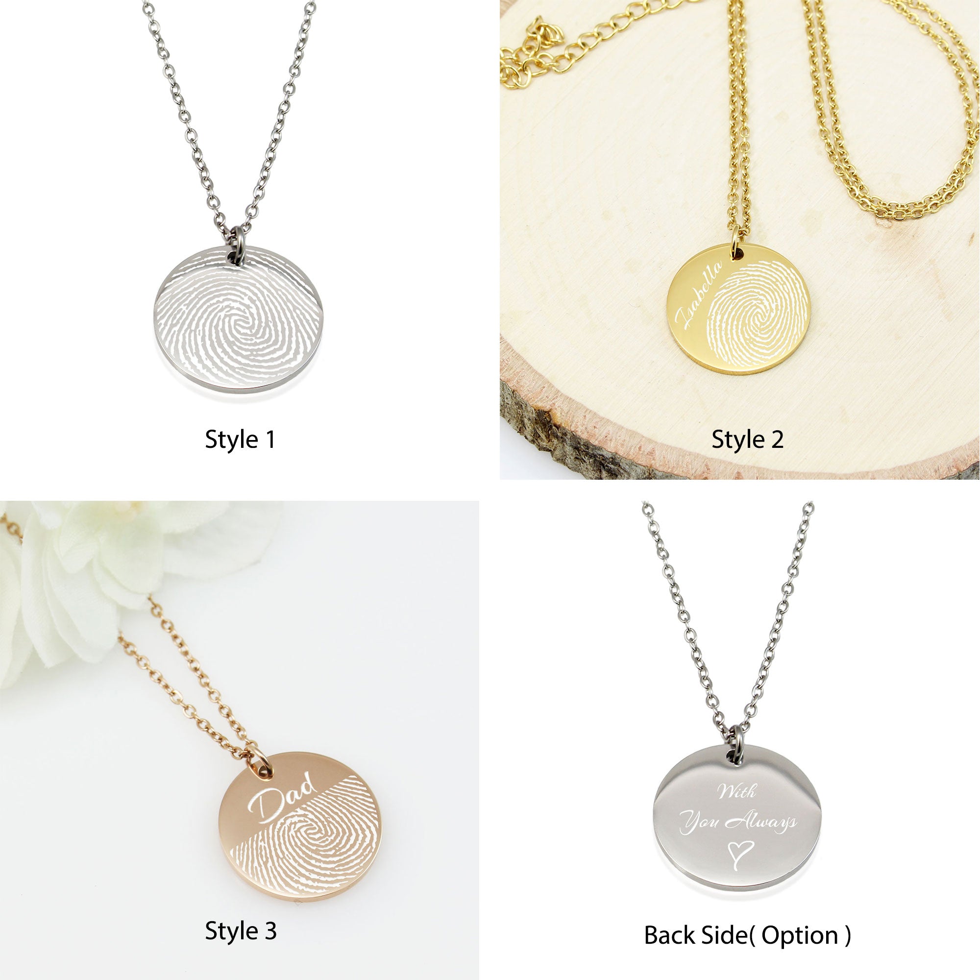 Engraved Fingerprint Jewelry - Bereavement Present - Memorial Necklace - Handwritten Necklace