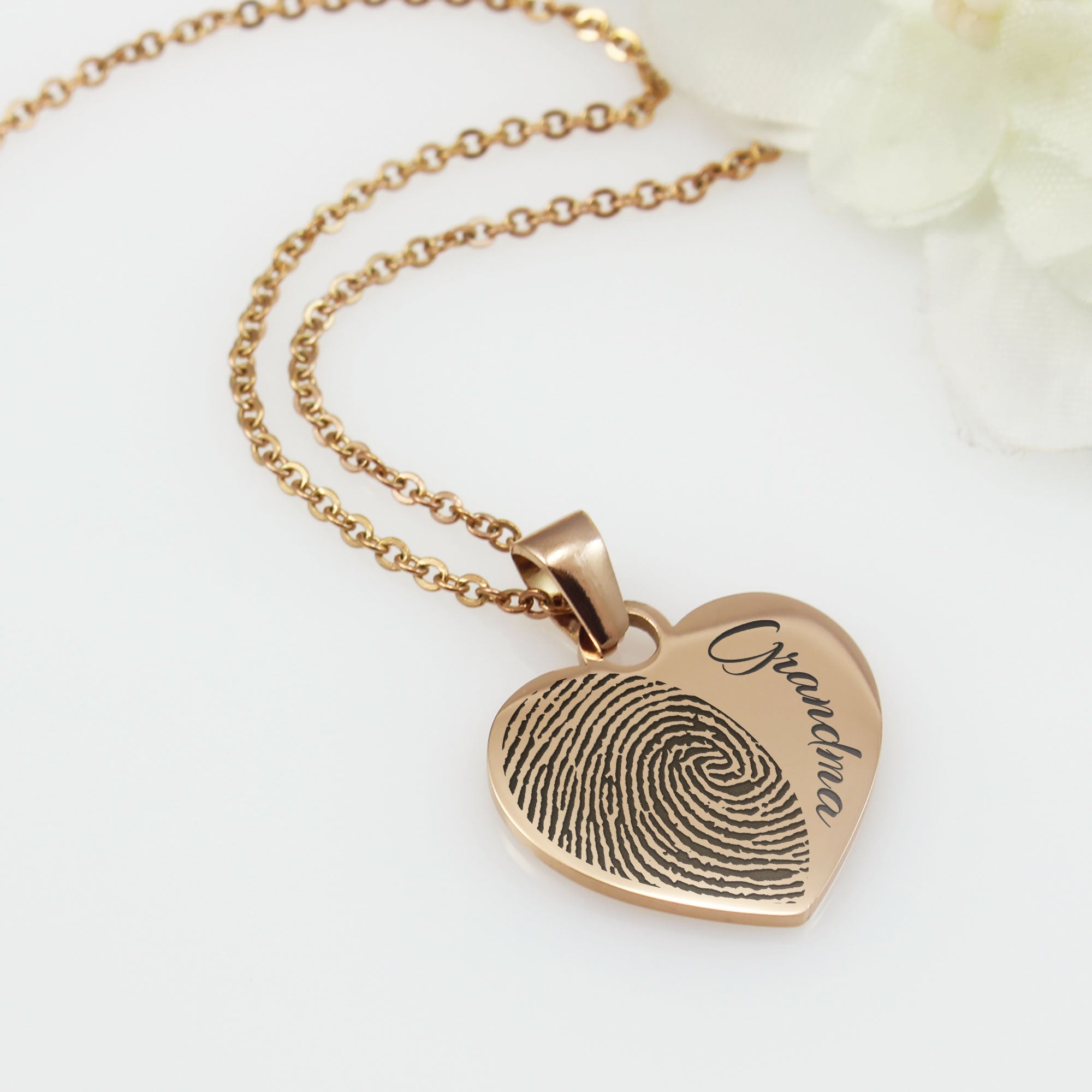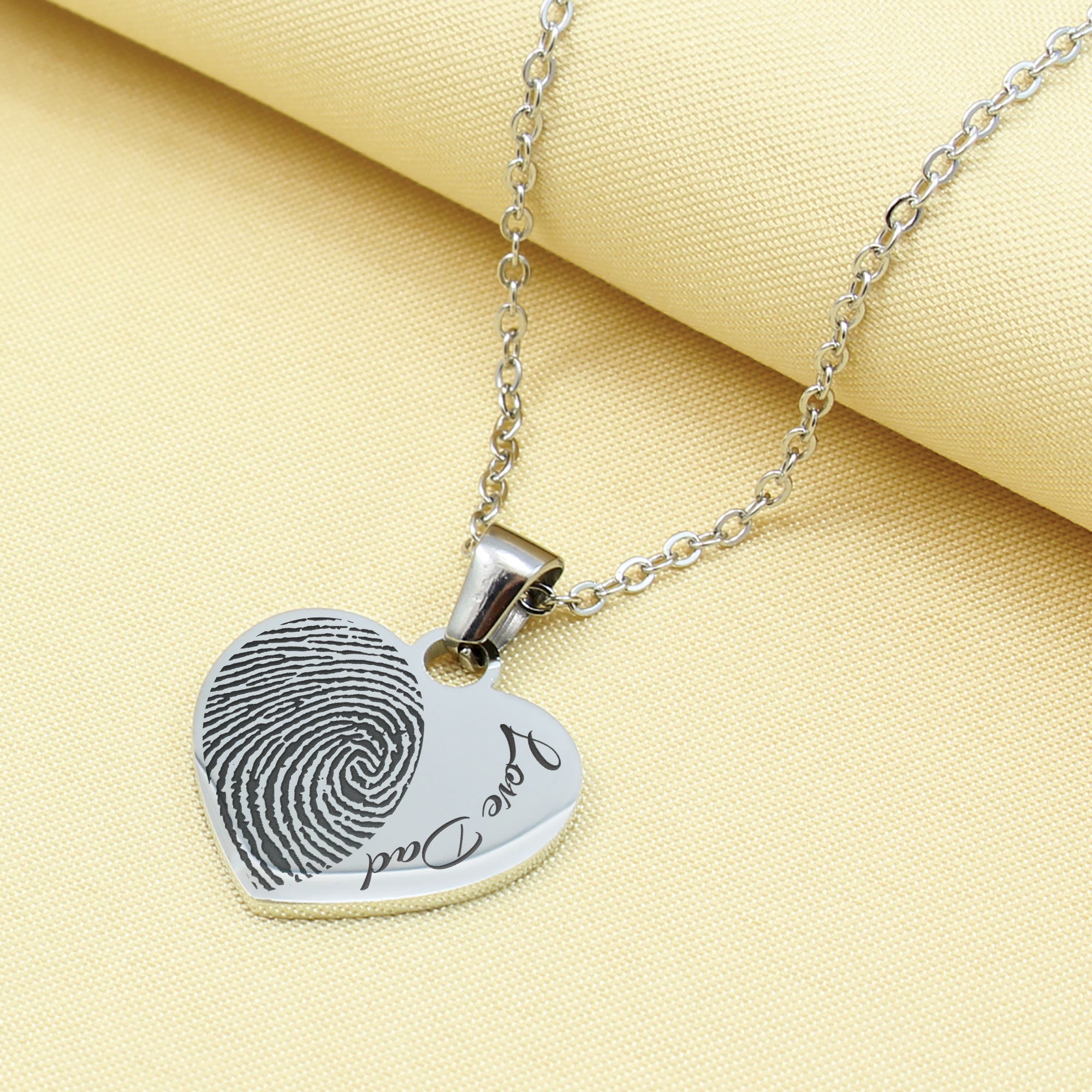 Customized Engraved Fingerprint Heart Pendant - Memorial Necklace - Bereavement Gift