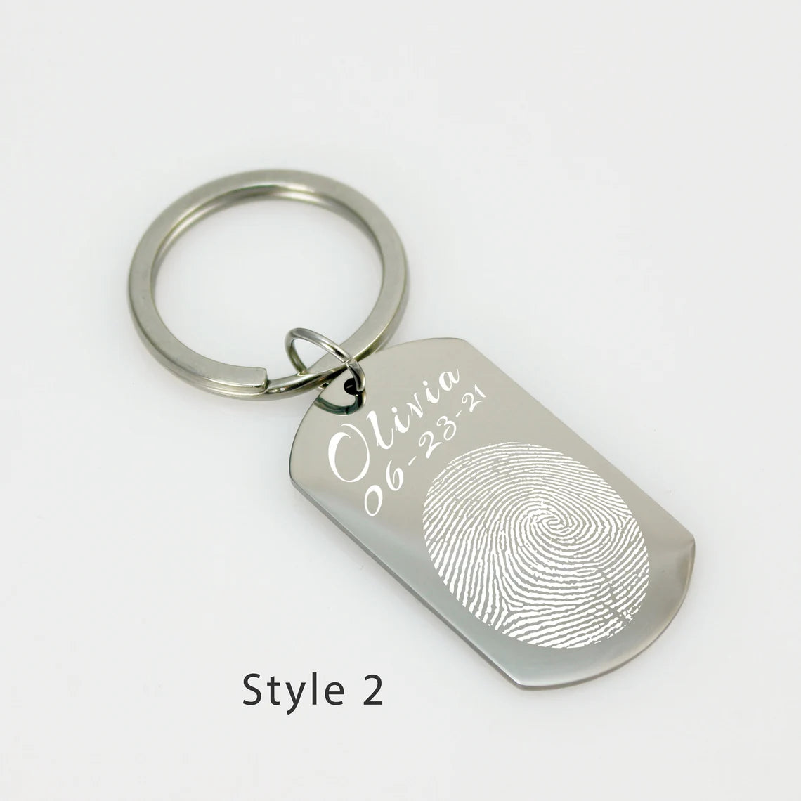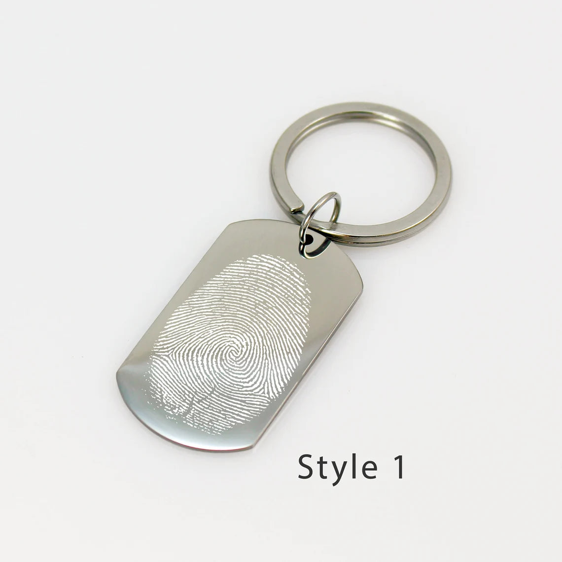 Personalized Stainless Steel Keychain - Bereavement Gift - Memorial Fingerprint Pendant - Father Gift Keychain