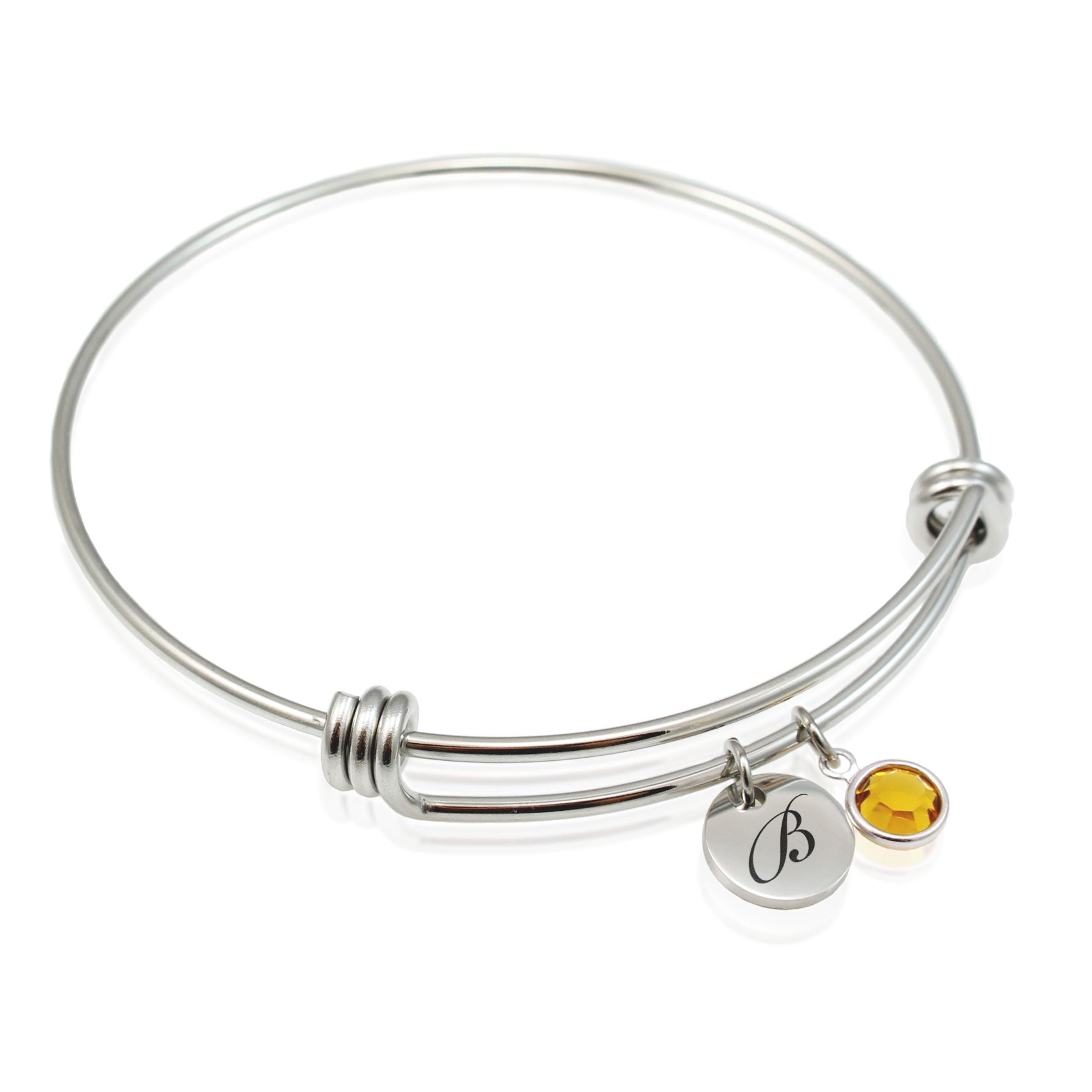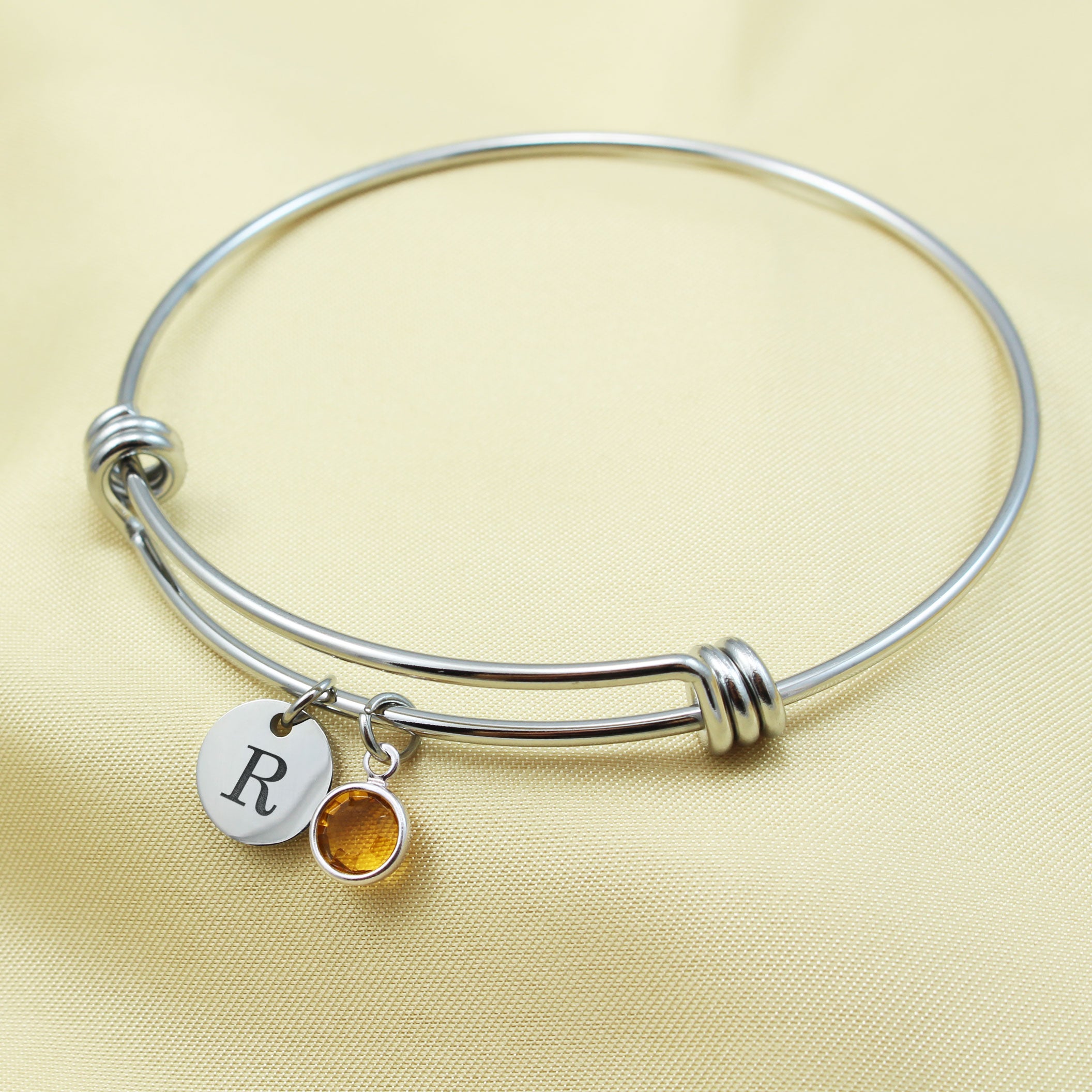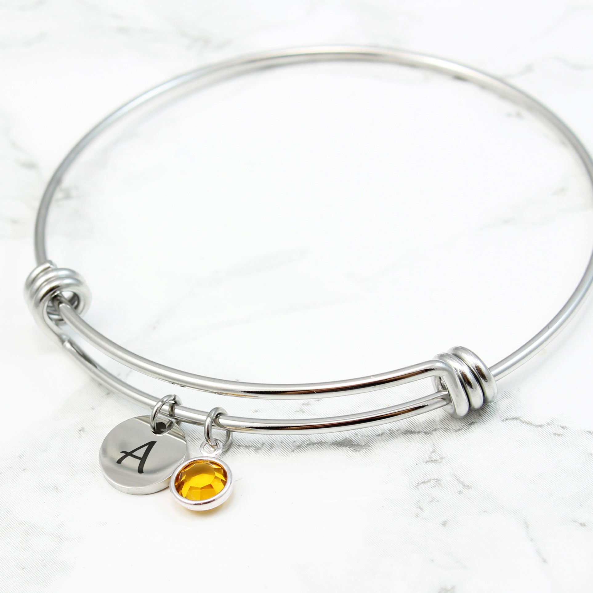 Personalized Initial Bangle - Mother Bracelet Initial Expandable Bangle - Swarovski Birthstone Mom Gift