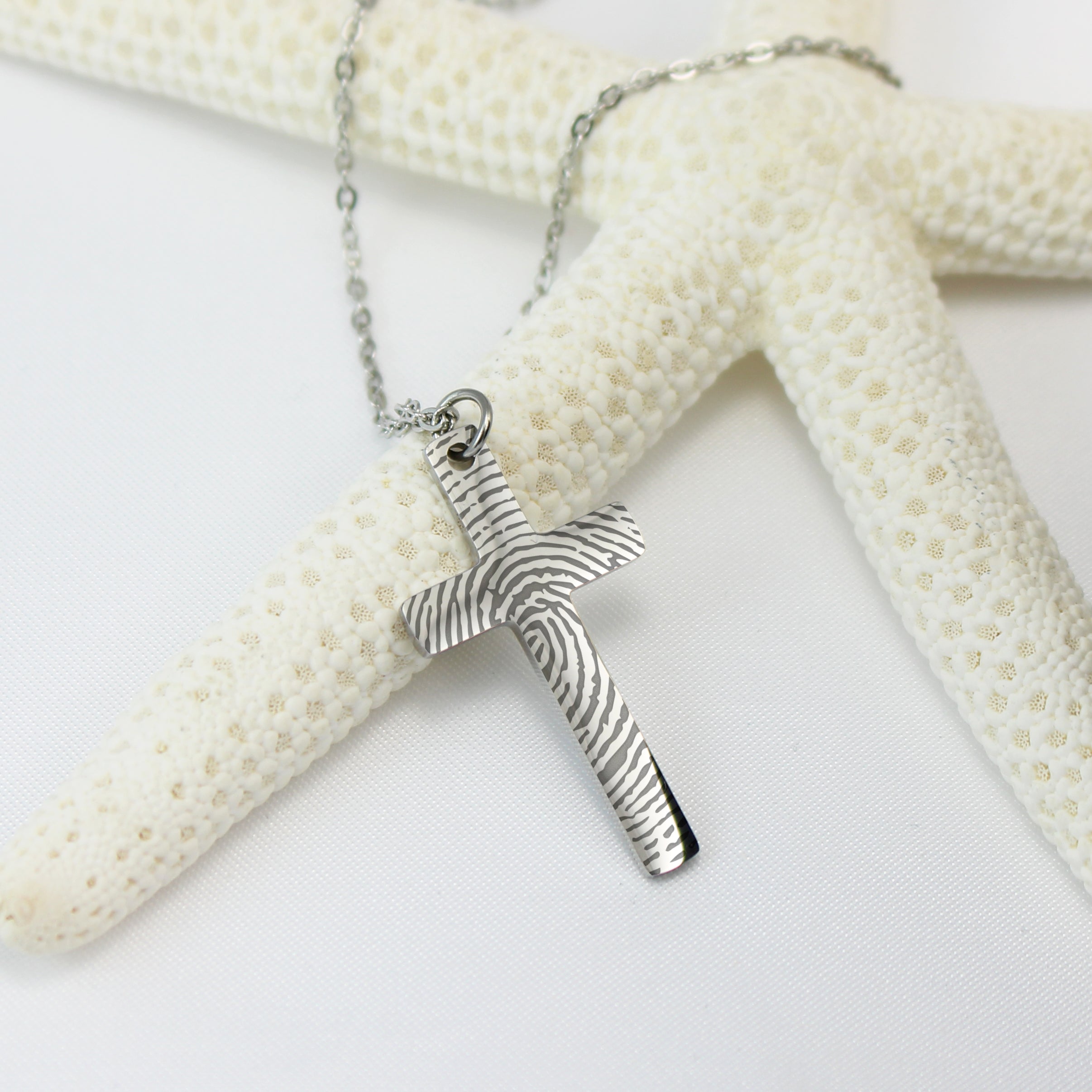 Engraved Fingerprint Name Message Cross Necklace - Blake