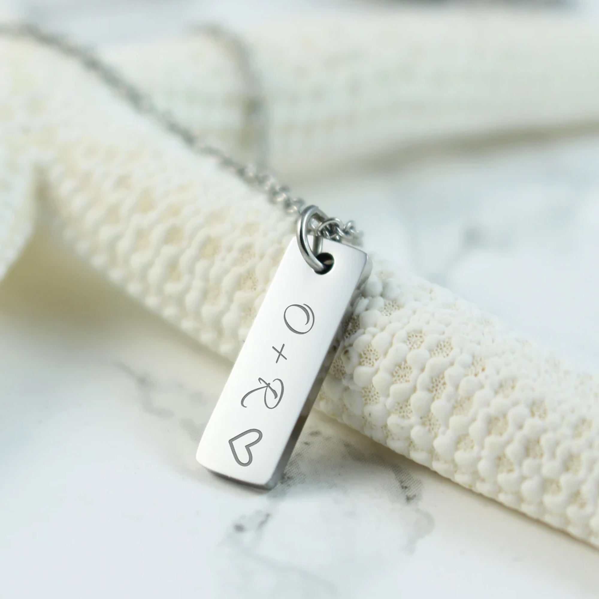 Actual Fingerprint Engraved Necklace Stainless Steel Gold Rose Gold Bar Necklace Bereavement Jewelry Memorial Gift Meaningful Necklace