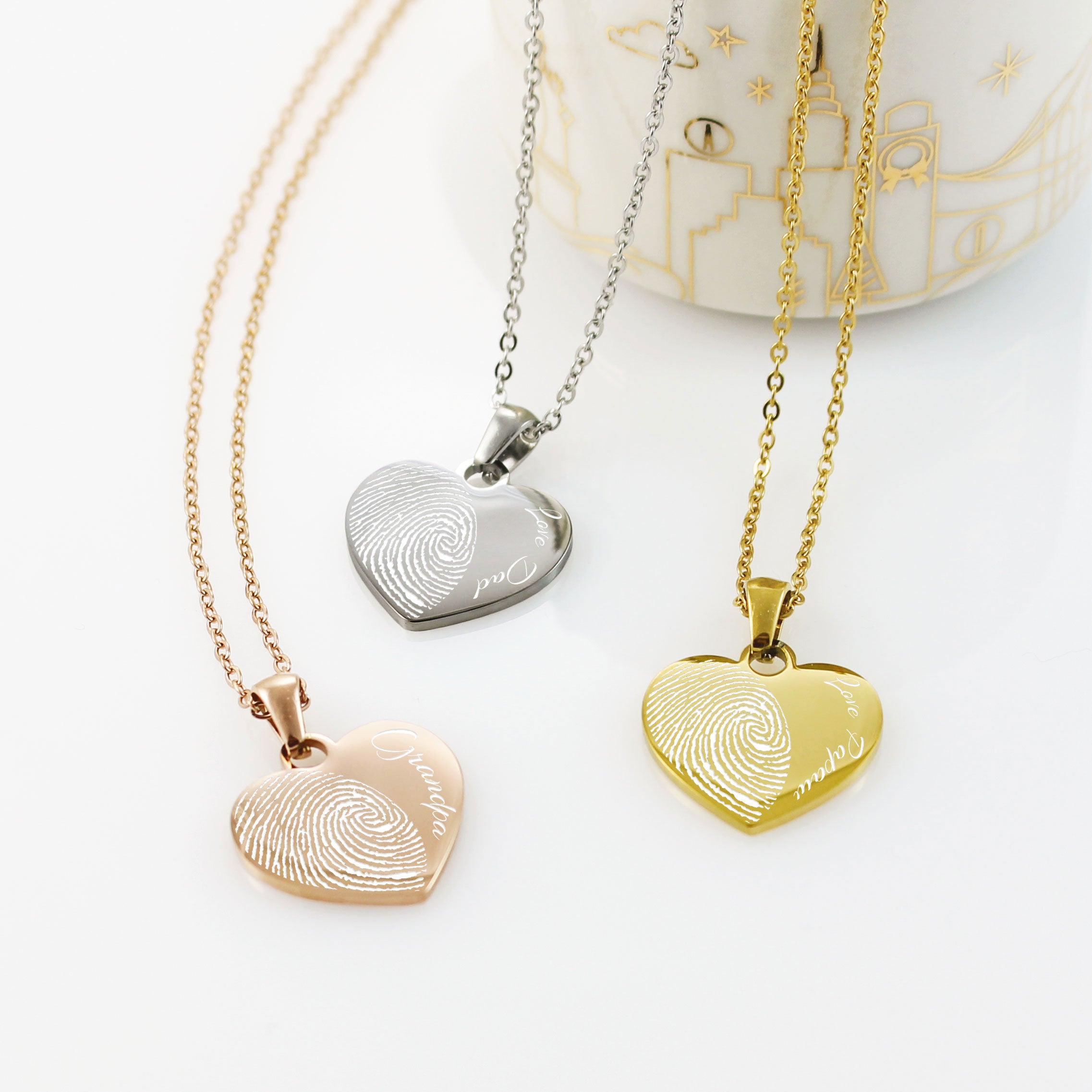 Customized Engraved Fingerprint Heart Pendant - Memorial Necklace - Bereavement Gift